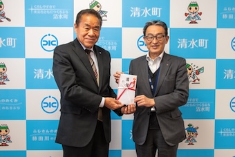 - 沼津信用金庫の皆さまが、「地域応援キャンペーン」に基づく本町への寄付のためご来庁されました。
