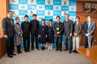 - 「シヅクリプロジェクト静岡カップ(セカンドステージ)」でグランプリを受賞した南中学校の生徒の皆さまが、その報告のためご来庁くださいました。