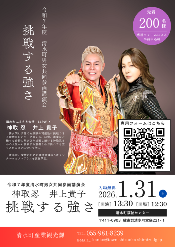 先着200名様【神取忍さん 井上貴子さん 特別講演会】令和7年度男女共同参画講演会「挑戦する強さ」申込開始!!