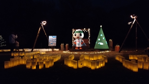 ★木村鋳造所(町内企業)制作150cm等身大ゆうすいくん・光るクリスマスツリー登場