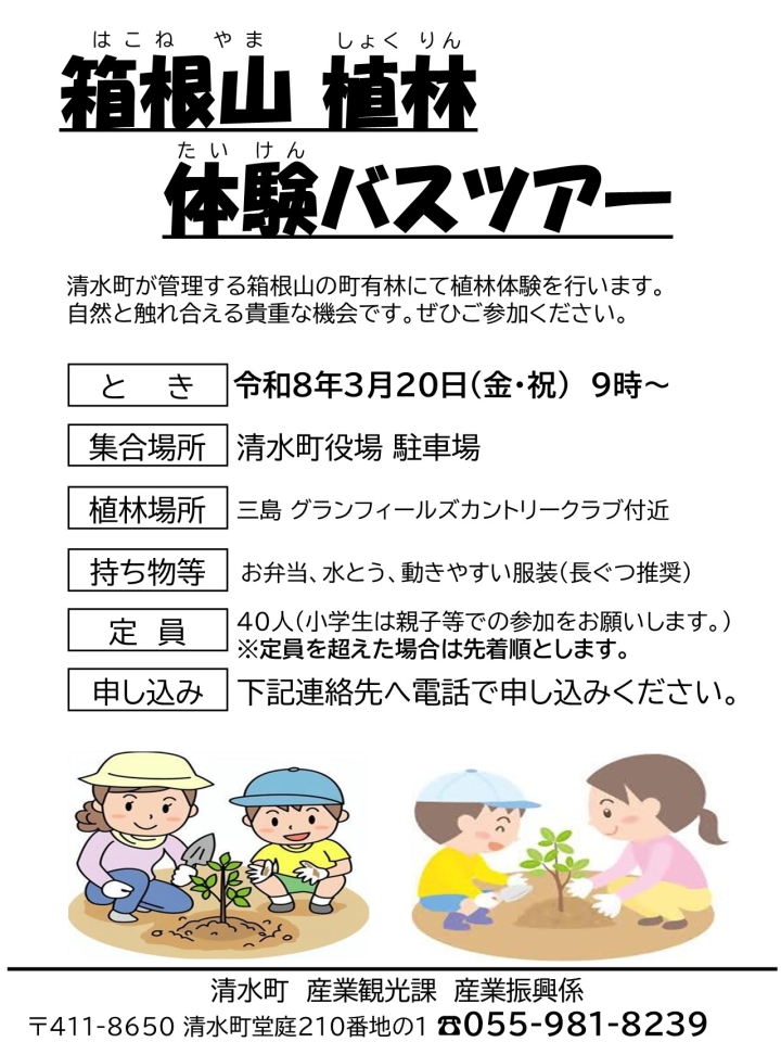 植林バスツアーとは、町が管理している町有林の敷地内に植樹(木を植える)をする体験です。