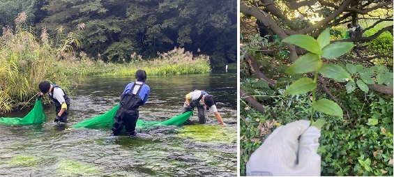 (公財)柿田川みどりのトラスト指導のもと、柿田川の生態系を脅かす特定外来種の駆除作業を定期的に行っています。
